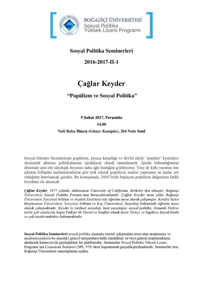 Sosyal Politika Seminerleri 2016-2017: Popülizm ve Sosyal Politika