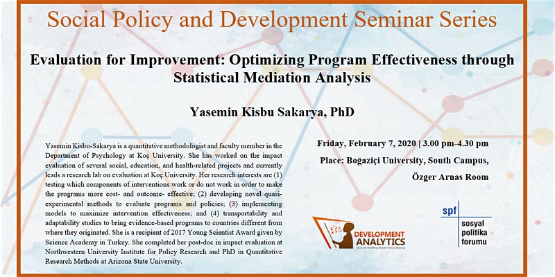 Sosyal Politika ve Kalkınma Seminerleri 2020: Evaluation for Improvement: Optimizing Program Effectiveness through Statistical Mediation Analysis